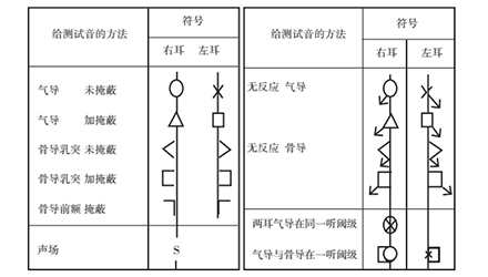 <span style="font-size:16px;"> 橫坐標(biāo)代表頻率,以倍頻程為單位分隔——請(qǐng)記住倍頻程的概念,它指兩個(gè)頻率間的間隔,高頻是相鄰低頻的兩倍;縱坐標(biāo)代表強(qiáng)度。右耳氣導(dǎo)用紅色“O”標(biāo)記,左耳用藍(lán)色“X”標(biāo)記,閾值就是頻率與強(qiáng)度的交叉點(diǎn)位置。比如某人左耳在250Hz處的聽閾是30dBHL,則在250Hz這一軸線上30dBHL中點(diǎn)劃一藍(lán)叉。30dBHL是聽閾,正常人的聽閾是-10dBHL~25dBHL,也就是說,這個(gè)人的聽力損失(也可稱做聽敏度下降)只有5dBHL。</span></p><center><img src="/upfiles/20181015013344992.png" alt="" /><br /></center><p></p><p style="text-align: center;"><span style="font-size:14px;">國家統(tǒng)一聽力標(biāo)記符號(hào)</span></p><p><span style="font-size:16px;"> 用聽力圖表示聽閾級(jí)時(shí),應(yīng)采用上表所給符號(hào),對(duì)氣導(dǎo)相鄰點(diǎn)用直線連接,骨導(dǎo)用虛線連接。如在聽力計(jì)最大輸出級(jí)仍無反應(yīng),可在相應(yīng)符號(hào)處垂直向下畫一箭頭,或在符號(hào)的下外角與垂直方約成45°角向下畫圖一箭頭(即左耳符號(hào)箭頭向右,右耳符號(hào)箭頭向左)。無反應(yīng)的符號(hào)記在聽力圖上代表聽力計(jì)最大輸出的聽力級(jí)處。如用彩色筆記錄,右耳符號(hào)和連線為紅色,左耳符號(hào)與連線為藍(lán)色。從篩選測(cè)聽法得出的結(jié)果應(yīng)清楚地照此表示出來。</span></p><p><span style="font-size:16px;"> 更多詳情請(qǐng)登錄www.hnghng.cn</span></p>" />