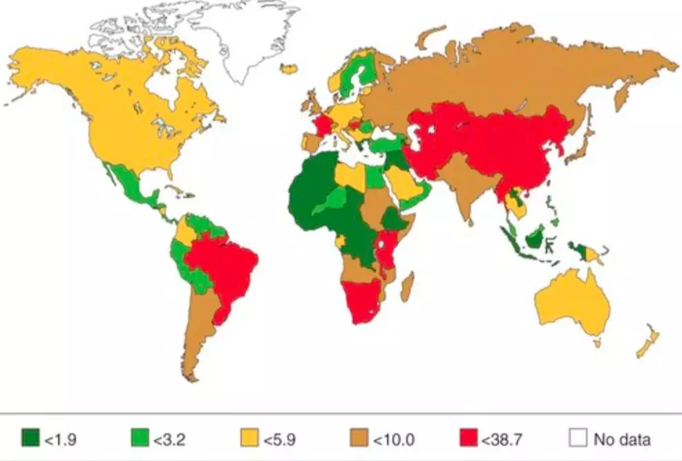 全球食道癌發病率地圖