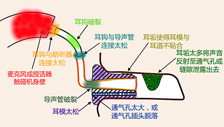 <span style="font-size:16px;"> 嘯叫,一直是引起助聽器使用者不滿的一大原因,也是驗配師在助聽器調試時最為棘手的難題之一。</span></p><p><span style="font-size:16px;"> 通常,嘯叫分內部嘯叫和外部嘯叫。內部嘯叫常由內部零件故障引起,而外部嘯叫則是與助聽器外殼或耳模,助聽器調試等有關。</span></p><p style="text-align: center;"><span style="font-size:16px;"><img src="/upfiles/201810100140556872.jpg" alt="" /><br /></span></p><p><span style="font-size:16px;"> 我們常常說的外部嘯叫是在聲音被麥克風拾取、放大器放大、授話器轉換后,又從各種縫隙(如外殼與耳道的縫隙、通氣孔)中“跑”出來,又“跑”進去,如此反復多次,使得聲音越來越大,產生“吱吱吱”的惱人嘯叫。</span></p><p><span style="font-size:16px;"> 以助聽器的角度來看,shou話器把聲音授給耳朵聽,當用“授”,即授話器。</span></p><p><span style="font-size:16px;"> 接下來將分別針對定制式(ITE/ITC/CIC)和耳背式(BTE)助聽器的嘯叫問題,跟著產生嘯叫的路徑,一一“攻破”嘯叫難題。注意,這里不說助聽器調試,只尋嘯叫路徑,并“堵死”嘯叫“通路”,讓進入助聽器的聲音“不走回頭路”。</span></p><p><span style="font-size:16px;"> 1、ITE/ITC/CIC助聽器</span></p><p><span style="font-size:16px;"> 先來看看ITE/ITC/CIC助聽器可能發生嘯叫的路徑。</span></p><p><span style="font-size:16px;"> 圖1里是一個定制式助聽器佩戴于外耳道內的示意圖,各種顏色的字和相應顏色的標記展示了發生嘯叫的各種情況。</span></p><center><span style="font-size:16px;"><img alt="" src="/upfiles/201810100142273990.png" width="440" height="250" /></span></center><p></p><p style="text-align: center;"><span style="font-size:16px;">圖1:ITE/ITC/CIC助聽器發生嘯叫的路徑一覽</span></p><p style="text-align: left;"><span style="font-size:16px;"> 例如,紅色表示“麥克風管子脫落”,這屬于助聽器內部零件脫落、故障,為內部嘯叫。</span></p><p><span style="font-size:16px;"> 橙色表示“外殼佩戴太松”,這屬于外殼不密封的聲音泄露,為外部嘯叫。</span></p><p><span style="font-size:16px;"> 那如何檢查出是這些原因,并對問題進行相應處理呢?請對照表1中的“診斷依據”和“處理方法”查看。</span></p><center><span style="font-size:16px;"><img alt="" src="/upfiles/201810100142337254.png" width="520" height="250" /></span></center><p></p><p style="text-align: center;"><span style="font-size:16px;">表1:ITE/ITC/CIC助聽器產生嘯叫的可能原因及對應的診斷依據、處理方法</span></p><p><span style="font-size:16px;"> 例如,當發現“手指堵住麥克風入聲口后仍有嘯叫”,可推斷原因是“麥克風管子從麥克風或外殼上脫落”或“麥克風或授話器移動,觸碰到外殼或其他傳感器”,這時的處理方法是“送廠維修”。</span></p><p><span style="font-size:16px;"> 2、BTE助聽器</span></p><p><span style="font-size:16px;"> 學會了看ITE/ITC/CIC助聽器的一圖一表,再來看看BTE助聽器的嘯叫路徑圖(圖2),以及表2中羅列的可能原因、診斷依據和處理方法,相信看起來更加輕松、直觀、一目了然。</span></p><center><span style="font-size:16px;"><img alt="" src="/upfiles/201810100142383483.png" width="440" height="250" /></span></center><p></p><p style="text-align: center;"><span style="font-size:16px;">圖2:BTE助聽器發生嘯叫的路徑一覽</span></p><center><span style="font-size:16px;"><img alt="" src="/upfiles/201810100142449945.png" width="462" height="273" /></span></center><p></p><p style="text-align: center;"><span style="font-size:16px;">表2:BTE助聽器產生嘯叫的可能原因及對應的診斷依據、處理方法</span></p><p><span style="font-size:16px;"> 更多詳情請登錄www.hnghng.cn。</span></p>" />