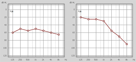 再者,即便老李和隔壁老王的聽力損失程度相同,在不同頻率的聽力損傷也不盡相同,反映在聽力圖上即為聽力圖形狀的不同。