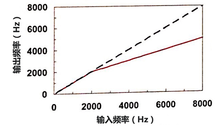 圖中所示移頻為線性頻率壓縮,每個輸出頻率約等于相應輸入頻率的1/2,例如頻率由2000Hz移至1000Hz。