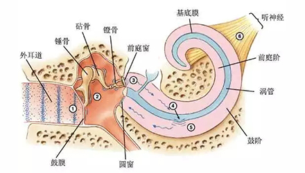 人體各器官功能取決于其生理結構,高頻陡降性聽力損失最為常見主要與耳部各個解剖部位有關。</p><p> 1、外耳的漏斗狀結構和彎曲“S”型耳道,此結構使得外界的聲學物理發生了變化。</p><p> </p><center><img alt="" src="/upfiles/201904030222181282.png" width="440" height="250" /></center><p></p><p> 如上圖所示,人類耳廓及耳道對不同頻率段的聲音增益變化可以看出:在頻率2kHz-4kHz范圍耳道對聲音增益最大。研究表明噪聲引起的聽力損失常常位于噪聲頻率之上的一倍頻率程處,工業噪聲位于低中頻范圍內相對恒定,外耳道自然共振峰為2kHz-4kHz,故最容易導致4kHz-6kHz頻率范圍內聽力損失。這也就是為什么噪聲性聽障起初聽力損失常常從4KHz左右開始,逐漸損害影響至更好頻率。</p><p> 2、耳蝸螺旋狀結構</p><p> </p><center><img alt="" src="/upfiles/201904030222256648.png" width="440" height="250" /></center><p></p><p> 聲音從外耳道經聽骨鏈傳至內耳前庭窗,懸浮在耳蝸內的基底膜剪切運動引起其上的毛細胞電位變化,傳至大腦皮層感受聲音。</p><p> 耳蝸結構類似蝸牛呈螺旋結構,約2.5圈-2.75圈。聲波在基底膜上的傳播方式,是按物理學中的行波原理進行的,亦即行波學說(travellingwavetheory)。基底膜的最大振幅部位與聲波的頻率有關,亦即每一種頻率的聲波在基底膜上不同位置有一相應的最大振幅部位:高頻聲引起的最大振幅部位在蝸底靠近前庭窗處,低頻最大振幅靠近蝸頂,中頻在中間部分發生共振。由此可知,聲音從高頻到低頻的傳播途徑均需底周基底膜的振動,即高頻段的基底膜相對容易疲勞。同時耳蝸底周基底膜毛細胞含有比頂端毛細胞更低的抗氧化酶,故氨基糖苷類抗生素(慶大霉素、卡那霉素、鏈霉素等)耳毒性藥物出現的聽力損失都為陡降型聽力曲線。</p><p> 3、聽神經音頻分布</p><p> </p><center><img alt="" src="/upfiles/201904030222303234.png" width="440" height="250" /></center><p></p><p> 聽神經分布與耳蝸基底膜螺旋結構一脈相承,感受低頻的神經位于中心,感受高頻的聽神經位于外周。外傷、缺血缺氧、皰疹病毒等理化環境的變化首先影響到高頻。</p><p> 更多詳情請登錄聽覺有道助聽器www.hnghng.cn</p>" />