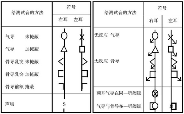 橫坐標代表頻率,以倍頻程為單位分隔——請記住倍頻程的概念,它指兩個頻率間的間隔,高頻是相鄰低頻的兩倍;縱坐標代表強度。右耳氣導用紅色“○”標記,左耳用藍色“×” 標記,閾值就是頻率與強度的交叉點位置。比如某人左耳在250Hz處的聽閾是30dBHL,則在250Hz這一軸線上30dB HL中點劃一藍叉。30dB HL是聽閾,正常人的聽閾是-10dB HL~25dB HL,也就是說,這個人的聽力損失(也可稱做聽敏度的下降)只有5dB HL。</p><p> </p><center><img alt="" src="/upfiles/201906100159589704.png" width="600" height="373" /></center><p></p><p style="text-align: center;">國家統一聽力標記符號</p><p> 用聽力圖表示聽閾級時,應采用上表所給符號,對氣導相鄰點用直線連接,骨導用虛線連接。如在聽力計最大輸出級仍無反應,可在相應符號處垂直向下畫一箭頭,或在符號的下外角與垂直方向約成45o角向下畫一箭頭(即左耳符號箭頭向右,右耳符號箭頭向左)。無反應的符號應記在聽力圖上代表聽力計最大輸出的聽力級處。如用彩色筆記錄,右耳符號和連線為紅色,左耳符號與連線為藍色。從篩選測聽法得出的結果應清楚地照此表示出來。</p><p> 更多詳情請登錄聽覺有道助聽器www.hnghng.cn</p>" />