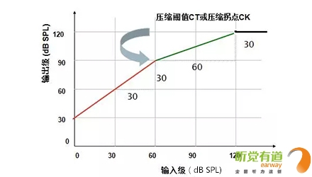 顧名思義,壓縮就是把超過一定強度的聲音減小至聽損患者縮小的殘余聽覺動態范圍里。相較于線性放大,壓縮可以有效達到“小聲聽得見,大聲受得了”的要求,尤其適用于感音神經性患者。</p><p> 壓縮參數主要有三個:壓縮拐點/壓縮閾值(CK/CT)、壓縮比(CR)與壓縮時間(起效時間AT,釋放時間RT)。下圖:橫坐標代表輸入級,即未經助聽器放大的聲音;縱坐標代表輸出級,即放大后的聲音。輸入與輸出的關系:輸出級=輸入級+增益,亦可表示:放大后的聲音=放大前的聲音+放大量。有了這個基礎,我們就可以清楚地理解這兩個參數的含義并進行調節。</p><p> 1、壓縮拐點(CK):線性放大與壓縮放大的臨界輸入級,此處為60 dB SPL,即輸入聲強度在60 dB SPL以下時為線性放大,超過60 dB SPL為壓縮放大。①紅線的輸入級范圍為0~60 dB,這段的聲音為線性放大,隨意找一個輸入級,用它對應的輸出級減去輸入級,得出線性放大的增益為30 dB;②當輸入級大于60 dB時,綠色曲線為壓縮放大,輸出與對應輸入的差值不再是30 dB,而是隨著輸入級增加,增益逐漸減小;③當輸出達到最大輸出限制時,輸出不再增大,保持在最大輸出限制位置。</p><p> </p><center><img alt="" src="/upfiles/201906120320158907.png" width="440" height="250" /></center><p></p><p> 2、壓縮比(CR):輸入級差值與輸出級差值的比值。上圖中線性狀態時壓縮比為1:1,可以找兩對數值,(輸入60-輸入0)/(輸出90-輸出30)=60/60=1:1。壓縮狀態時壓縮比為2:1,同樣可以找兩對數值,(輸入120-輸入60)/(輸出120-輸出90)=60/30=2:1。</p><p> 3、壓縮方式(CM):由于起效時間(AT)與釋放時間(RT)的不同組合構成不同的壓縮方式。</p><p> 助聽器由線性變換到壓縮時所需的穩定時間為起效時間。起效時間短,說明對大聲壓縮及時,不會造成聽力傷害;起效時間長,說明對大聲壓縮緩慢,有可能短暫感覺刺耳,但可以最大程度還原小聲與大聲的強度差異感。</p><p> 助聽器由壓縮回到線性時所需的穩定時間為釋放時間。釋放時間短,說明對小聲及時線性放大,避免小聲聽不見;釋放時間長,說明對小聲還在壓縮,放大不及時,有可能小聲聽不見,但可以最大程度還原大聲和小聲的強度差異感。</p><p> 我們可以做個比喻來了解壓縮的概念。假使你在高速路上,突然前方出現一個大大的警示牌,提示有事故發生,這時你需要迅速踩剎車以防撞擊。越早踩剎車相當于越早壓縮(壓縮拐點越小),剎車的力度越大相當于壓縮比越大,開始剎車至時速降至安全時速所需時間相當于起效時間,過了事故點踩油門,車速恢復至高速所需時間相當于釋放時間。</p><p> 壓縮是為了保護人們聽覺系統免受瞬間或持續中、大強度聲音的刺激,同時又能有效放大各種小聲的基本技術手段,可以使小聲、中等聲和大聲無一遺漏地進入聽障患者縮小的聽覺動態范圍中。</p><p> 恰當的壓縮拐點與壓縮比滿足了聽障患者達到“小聲聽得見、大聲受得了”的要求,而壓縮的起效時間與釋放時間設定需要考慮聽障患者個性化的聆聽喜好。</p><p> 起效時間與釋放時間都短,優點是小聲放大及時、大聲壓縮及時,即小聲聽得到大聲不覺吵,缺點是大小聲強度差異感不大;起效時間短釋放時間長,優點是大小聲強度差異感真實,音節間噪聲小,缺點是有可能小聲放大不足。</p><p> 事實上,各企業的助聽器軟件往往可以直接調節輕聲增益、中等聲增益、大聲增益與主增益而間接控制壓縮參數,有的軟件可見一套CK/CR,有的軟件可見兩套CK/CR。有些軟件會自動默認為自適應壓縮方式,能夠根據聲音強度差異自動調整。</p><p> 下圖匯總了對不同強度聲音不適的解決辦法,供大家參考。</p><p> </p><p><center><img alt="" src="/upfiles/201906120320202761.png" width="640" height="240" /></center><center><p style="text-align: left;"> 更多詳情請登錄聽覺有道助聽器www.hnghng.cn</p><br /></center></p>" />