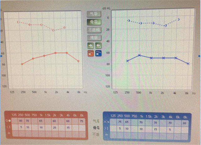 案例總結:對于骨導正常、氣導下降的傳導性聽力患者,一般言語分辨能力接近正常,所以如果能選配合適的助聽器,效果接近常人。如果因為耳道畸形閉鎖等特殊原因導致沒有辦法選配氣導助聽器,可以選擇頭帶式骨導助聽器或者手術植入式BAHA來幫助他們。
